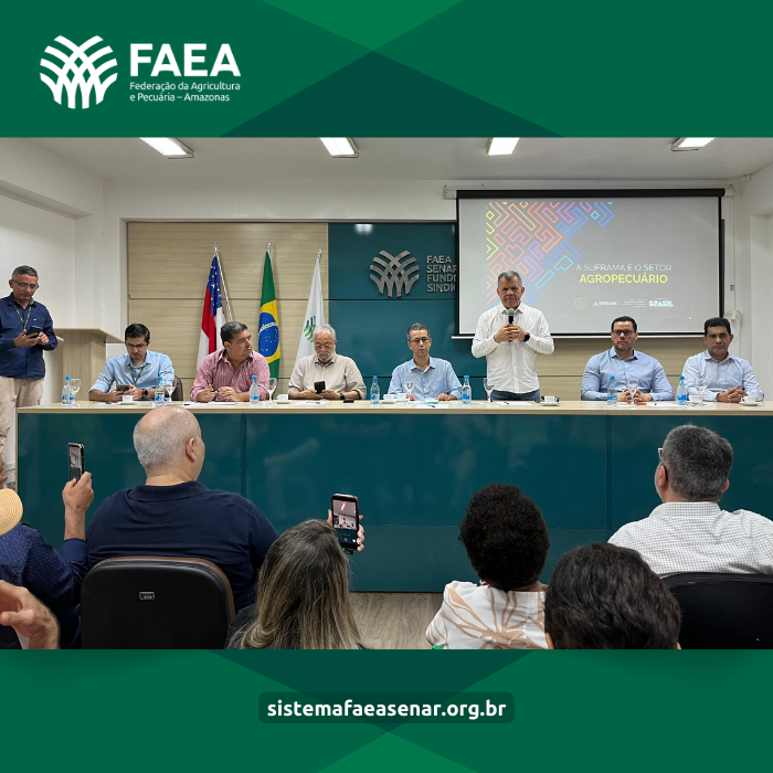 A Federação da Agricultura e Pecuária do Amazonas (Faea) realizou na manhã desta sexta-feira (06/03), em seu auditório, uma reunião institucional com o superintendente da Zona Franca de Manaus (Suframa), Bosco Saraiva. O encontro reuniu mais de 90 participantes, entre representantes do setor produtivo rural, empresários e autoridades para discutir estratégias de fortalecimento da agropecuária no âmbito da Zona Franca de Manaus.