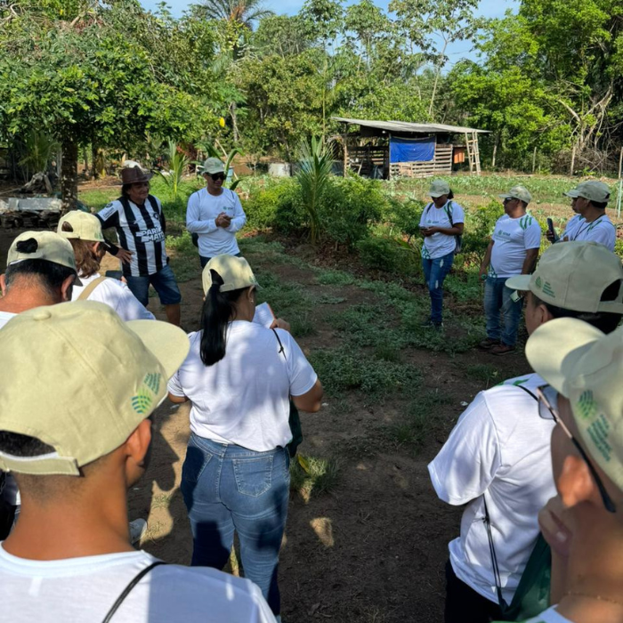 Também no dia 4 de outubro de 2025, a turma de Parintins, conduzida pelo instrutor José Alexandre Siqueira de Souza e acompanhada pelo Presidente do Sindicato Rural de Parintins o Sr. Werner Gama, teve uma imersão completa no dia a dia de uma propriedade. Os alunos realizaram o levantamento das principais frutíferas e hortaliças cultivadas, aprenderam sobre o histórico de implantação da área produtiva e a legislação ambiental pertinente. As atividades práticas incluíram a coleta de amostras de solo e uma demonstração sobre técnicas de adubação orgânica e mineral, consolidando o aprendizado de forma dinâmica e participativa.